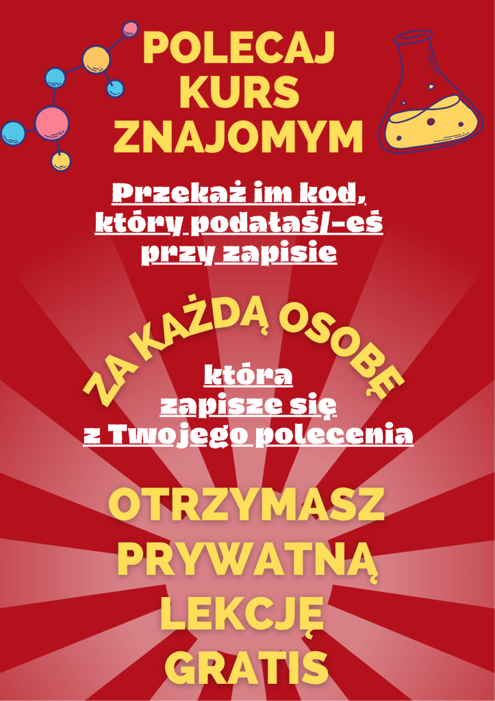 4. Chcesz mieć stały kontakt z prowadzącym (dr Marcin Surówka, nauczyciel z wieloletnim doświadczeniem dydaktycznym), który pomoże Ci z każdym problemem natury chemicznej.